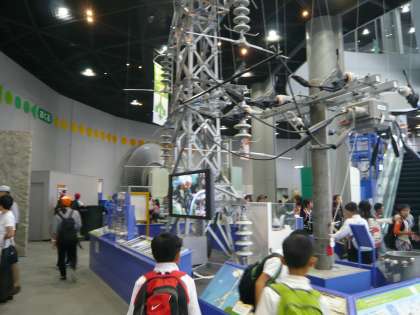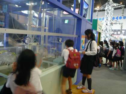 科学館では、プラネタリウムや展示物を見学
