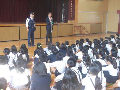 3時間目、西警察の警察官3名にお手伝い頂き、