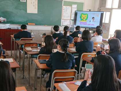 今日は第80回歯みがき大会のDVDの教材を使って歯と口の健康について学びました。