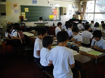 合唱では、パートに分かれて練習しました。友だちの音を聞いて歌うことはとても難しいようです。