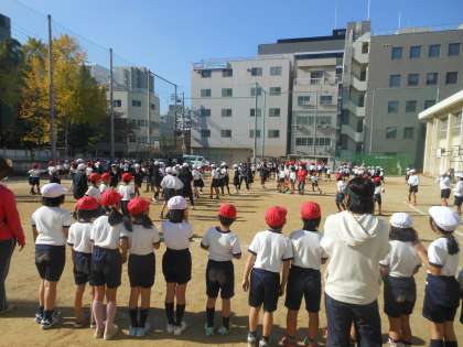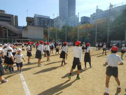 快晴の下、クラス対抗ドッジボール大会の試合を