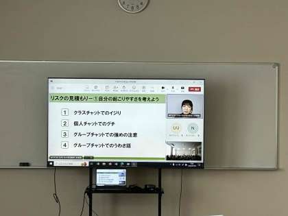 ワークシートを使いながら自分達に起こりそうなリスク(チャットでのいじり、うわさ話やネットゲームの高額課金など)を考えました。
