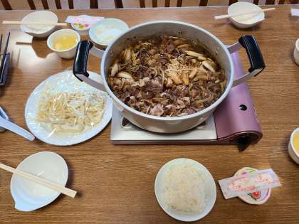 牛肉たっぶり、野菜もたくさん、うどんも有りで、最高の味付けでいただきました。