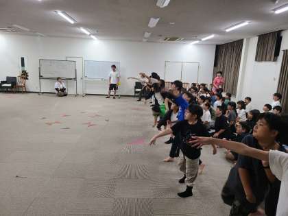プログラム2番は「やり投げ」です。やりは、ストローです。