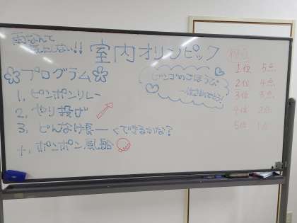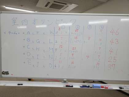 室内オリンピックは、活動班を4つのグループにして、対抗戦で競い合いました。
