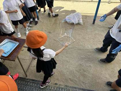 大きなしゃぼん玉ができる度に歓声があがりました。