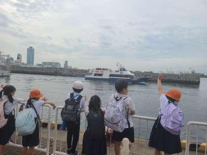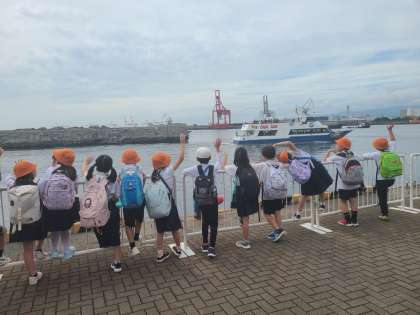 サンタマリア号とキャプテンシルバー号の出港のタイミングで、みんなで手を振り見送りました。