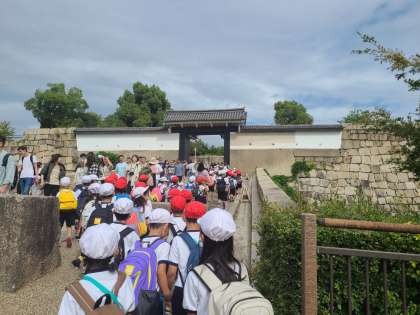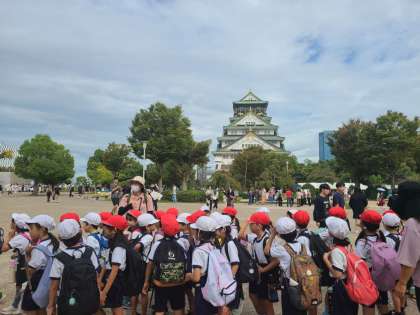 大阪城公園は外国人観光客や修学旅行の高校生など、多くの人でにぎわっています。