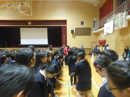 講堂から退場される際、児童の間を通って