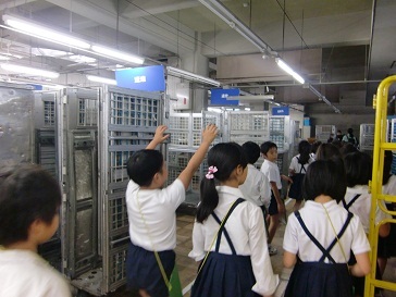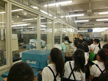 自分たちが持って行ったはがきに直接消印を押していただきました。ふだん見ることのできない局内を案内していただき、郵便局で働く方々の工夫や苦労も知ることができました。