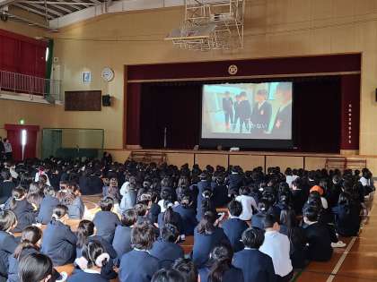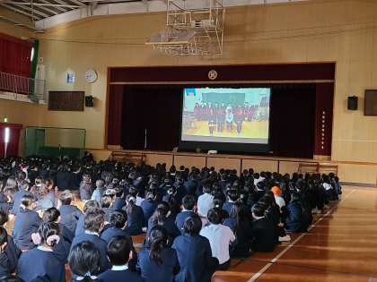 ユーモラスなVTRは、視聴する全校児童の目を釘付けにしていました。