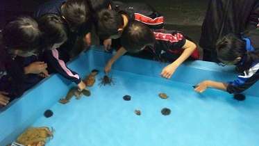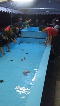 夜の水族館でペンギンタッチやお魚タッチ、裏方での餌やりなど、普段できない体験をしました。