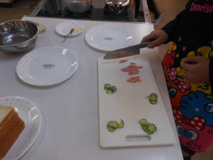 今日の調理実習では、「サンドウィッチ」を作って