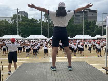 準備運動は、分校児童の担当です。