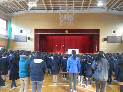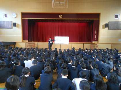 昨年の水泳大会で優勝し、進級したので表彰しました。