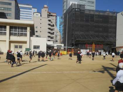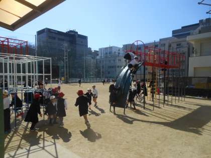 遊具で楽しんだり、運動場を追いかけっこしたり