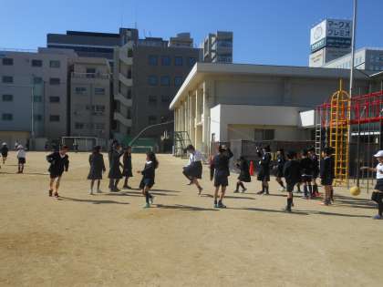 高学年は、大縄跳びをしたり、ボール遊びを