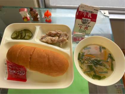そして、児童の好きな給食メニューランキングの上位に毎年君臨する「鶏肉のからあげ」です。子ども達には、大人気メニューとなっています。