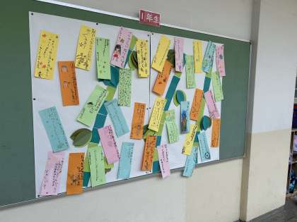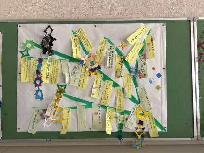 明治小学校でも、あちらこちらで七夕の短冊が貼られていました。