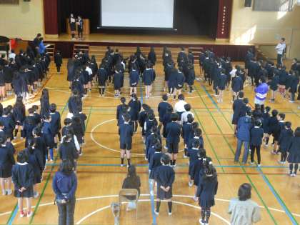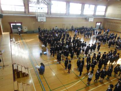 今日の児童集会では、明日行う「卒業おめでとう集会」の