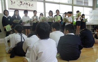 劇の台本の読み合わせをしました。練習では大きな声が出ています。本番でもしっかり声が出るように練習しましょう。