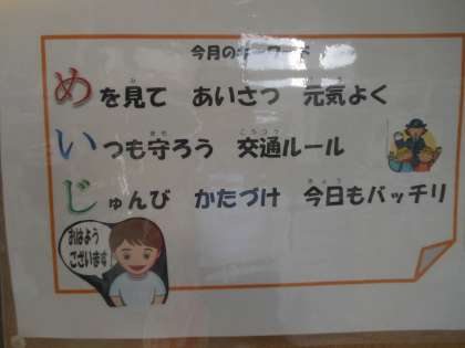 「め」めを見て あいさつ 元気よく
