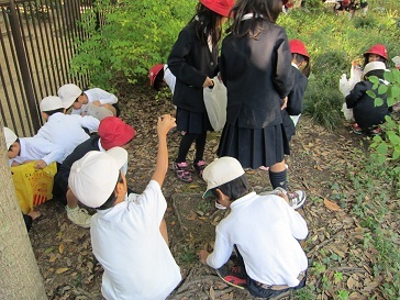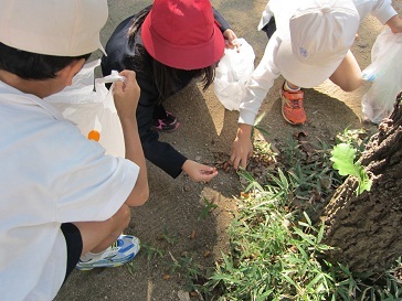 阿波座南公園にどんぐりを拾いに行きました。たくさんのどんぐりが落ちていて子どもたちは大喜びで拾っていました。生活科の学習に使います。