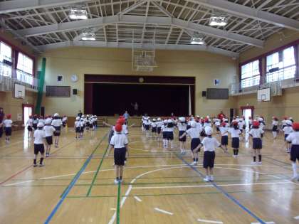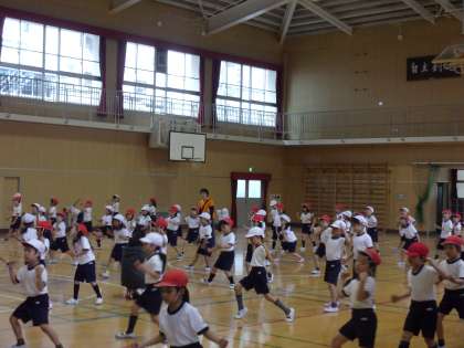 1年生は小学校で初めての運動会。2年生児童と