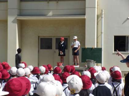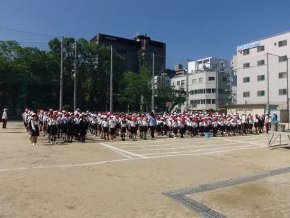 「スローガン」は、体育館の南側ガラスに掲示しています。