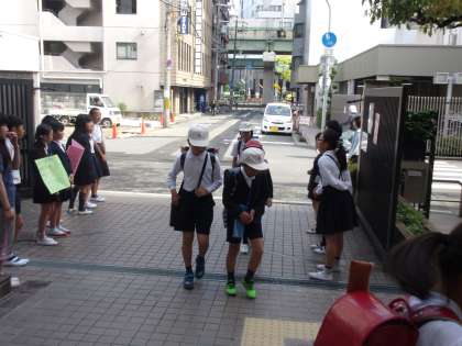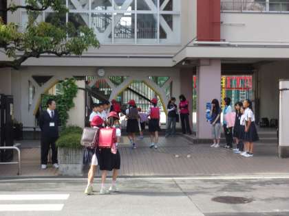 今日は、6年生1組の児童が正門に立ち、