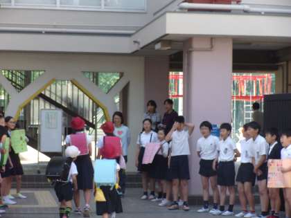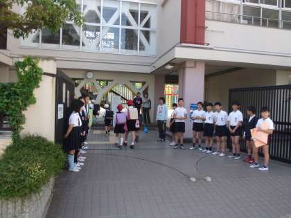 今日も、6年1組の児童が校門周辺で、あいさつ運動