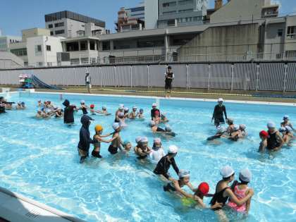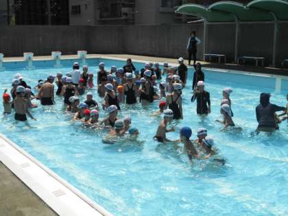 園児を迎えるに当たり、プールの水を低くし、