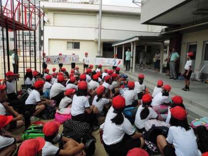 5年生は出発式を終え、ハチ高原に向けて出発しました。
