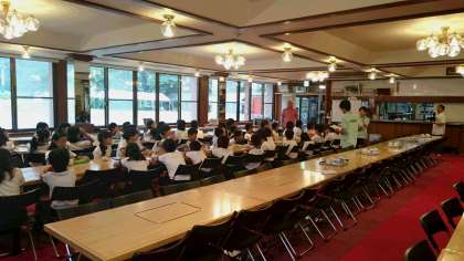 まが玉つくりに入る前に、谷常さんから説明を受けています。