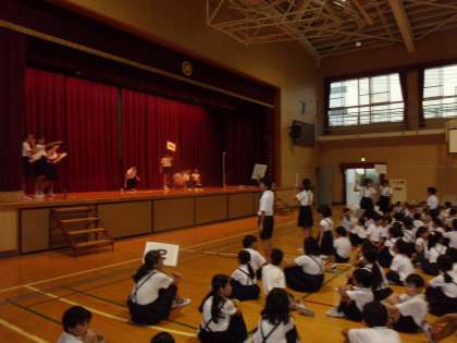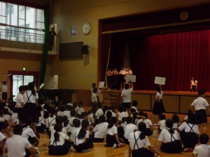 各班の児童が、委員会の児童とじゃんけんを行い、