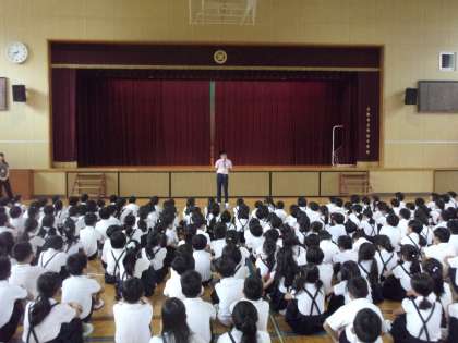 メンバーの健闘ぶりを称えて、全児童に紹介・
