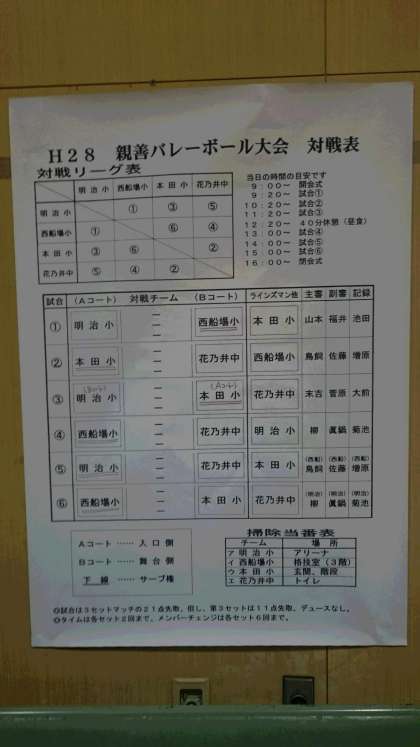 花乃井中学校体育館で、バレーボール大会が、開催されています。