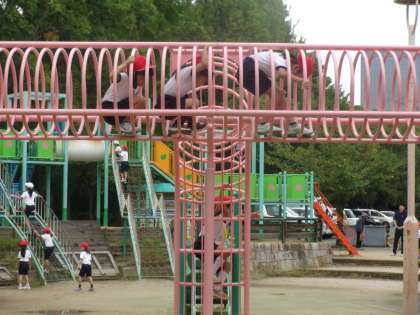大阪城公園に到着後、公園遊具で遊ぶ時間を