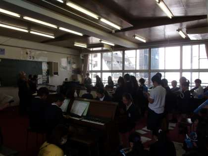 今日は、全体練習と共に、「リコーダー」「鍵盤