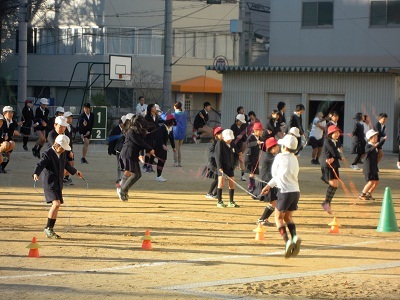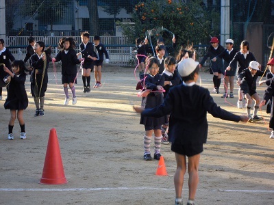 昨日の低学年の縄跳び集会に続いて、今日は高学年が縄跳びをしました。