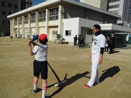 キャッチボールの後の指導は、バッティングです。
