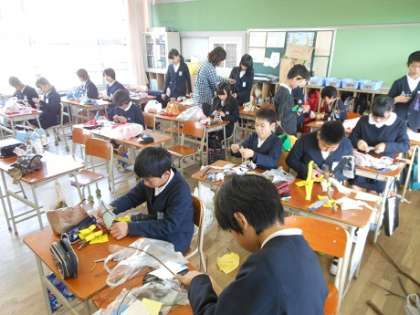 どのようにつなげるかそれぞれの思いで、6年生の芸術家たちが熱心にそして楽しんで活動していました。作品は自分だけの場所で写真を撮りました。