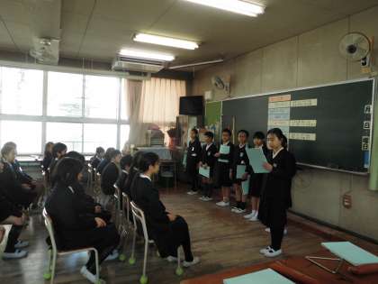 4年生の学習参観では、「二分の一成人式」を保護者の皆さんに