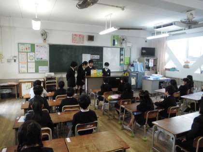 今日の読み聞かせの時間には、6年生の図書委員のメンバーが