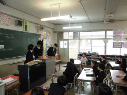 1年生1組・2組の教室で、読み聞かせをしてくれました。