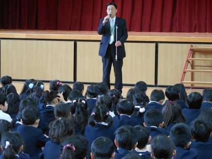 校長先生から土曜授業でおこなったなかよし祭りで見たみんなの協力の大切さについてお話がありました。