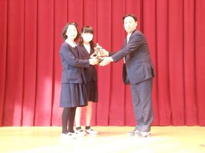 また、1月26日(日)にあったミニバスケットボール大会で準優勝した堀江のチームに所属している6年生女子2人の表彰もしました。