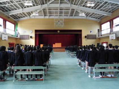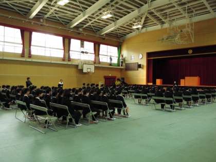 本番と同じ会場設定で、卒業式の練習が行われています。