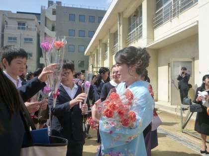 お世話になった担任の先生に、最後のご挨拶。