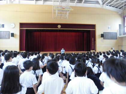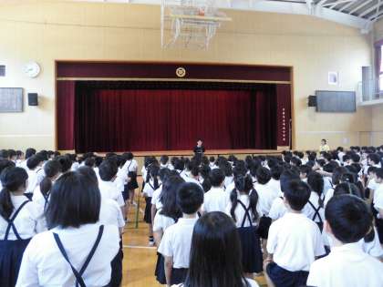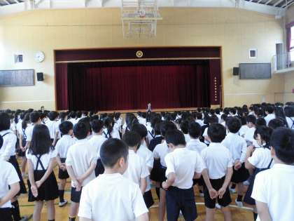 最初に校長から、転校生(4年生女児)の紹介がありました。